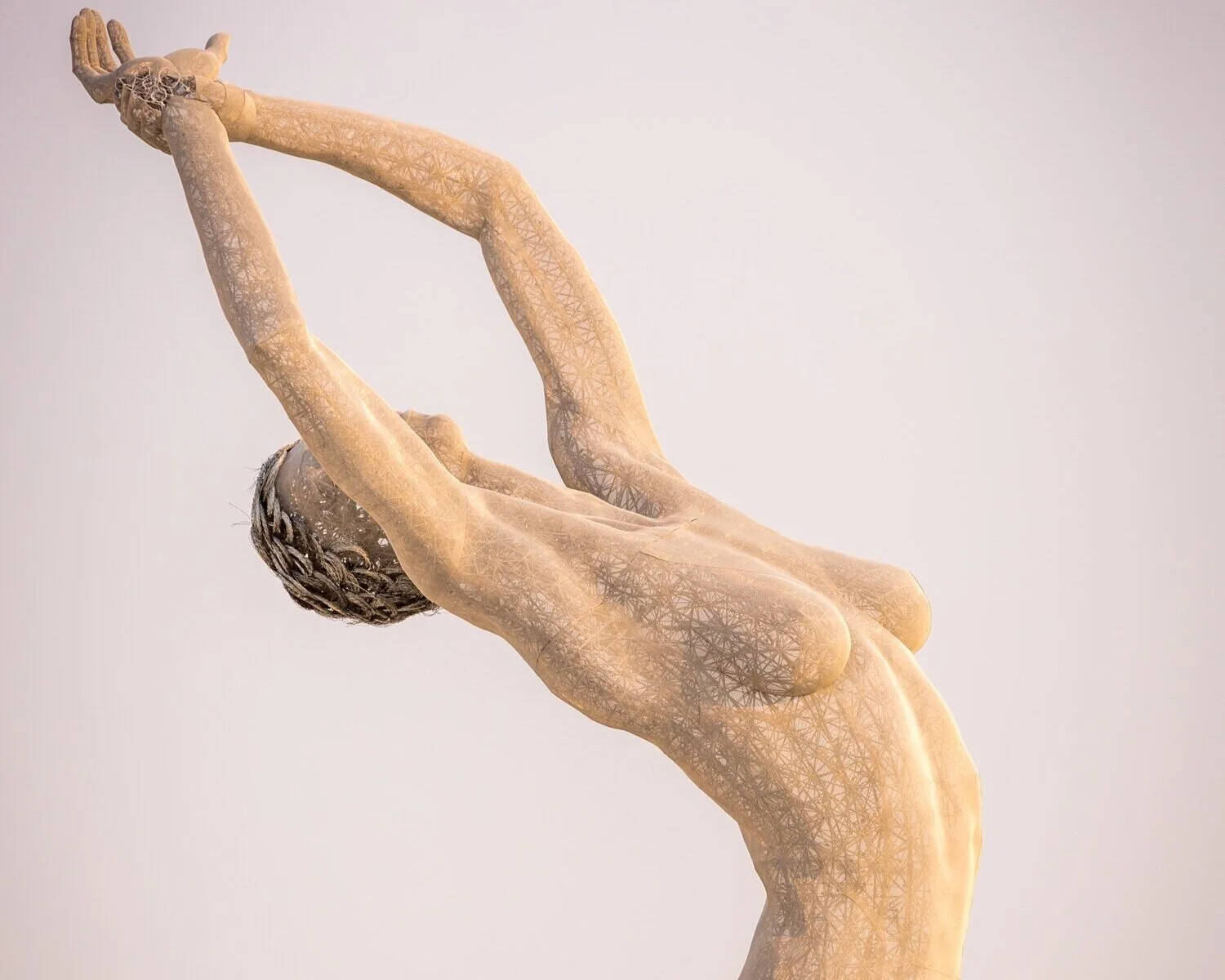 The Bliss Project is a series of three monumental sculptures ranging in size from 40 to 55 feet in height. Marco worked with singer/dancer Deja Solis as a collaborator and model, along with hundreds of volunteers, to create the series. Each sculpture is constructed of welded steel rods and balls, covered in stainless steel mesh skin with interactive lighting effects.